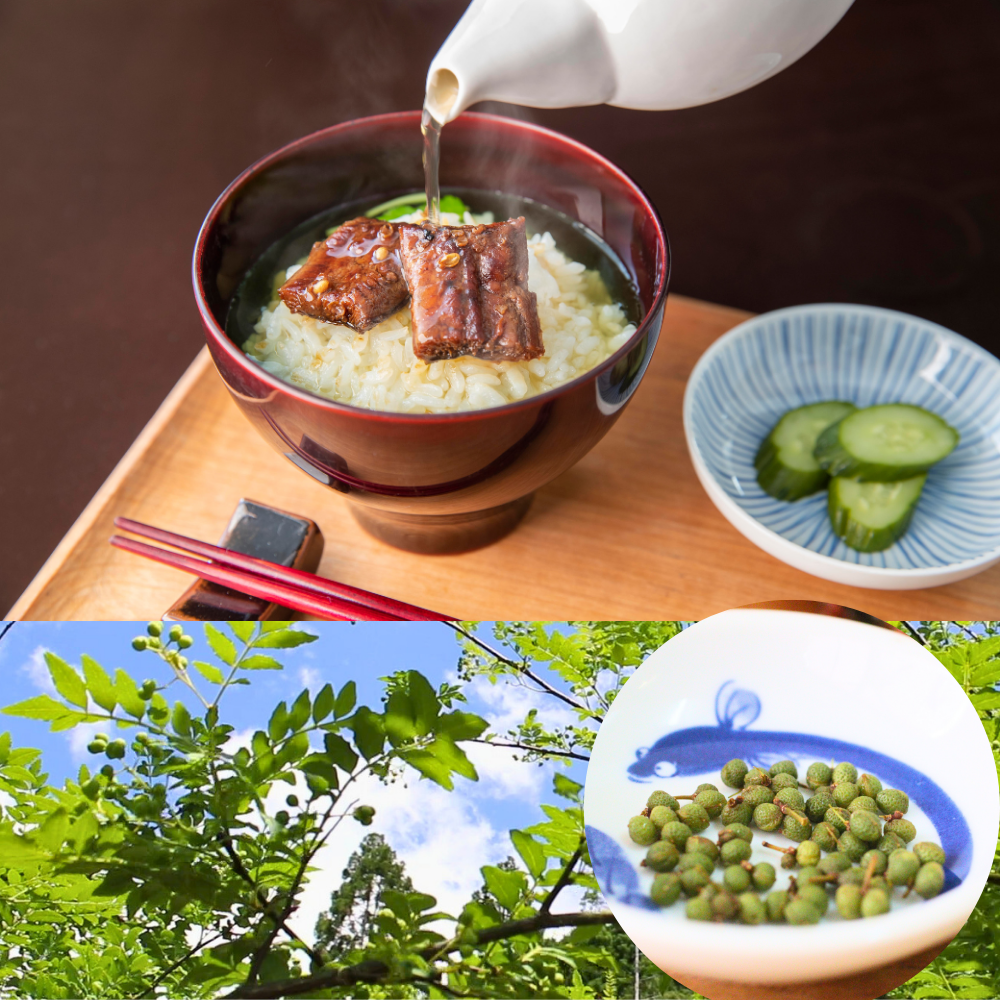 5月ごろの青々とした実山椒をつけこんだ山椒醤油に、うなぎを漬け込んでいます。フレッシュな山椒の香りをお楽しみください。